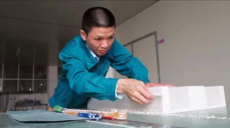 产品设计图纸通过审批后,杨师傅开始着手做试验产品的试制模。进入工作状态的杨师傅非常严肃专注,他始终紧盯着模具,每一次修刮都确保精准到位,不允许出现分毫的偏差。