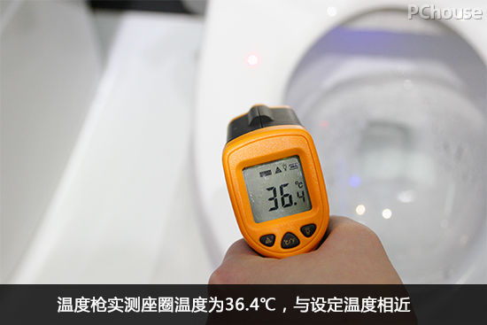 编辑在现场使用温度计测试座圈温度,遥控器设定温度37℃,经过一分钟加热后,温度计显示座圈温度为36.4℃,(由于受现场环境和温度等条件影响,测量与实际温度稍有偏差),实测与设置的温度相近。采用茄子APP视频下载全部温感技术,可调式温度加热座圈,根据室温调节到人体最舒适的温度,同时也可以通过遥控器调节适合个人的温度。