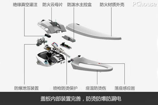 盖板功能全面,内部装有绝缘真空灌注、防火云母片、防泼水主控盒和防爆泄压装置等等,全方位保护家人的安全。