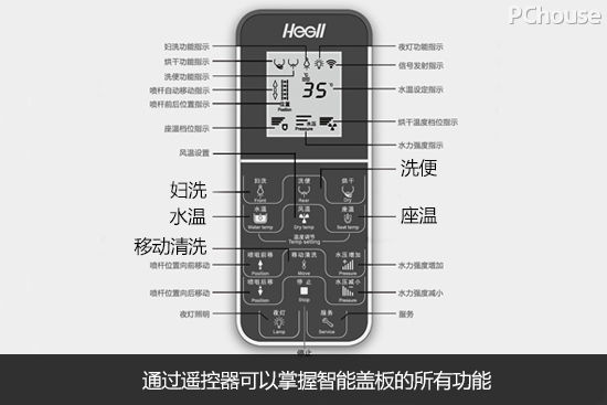 盖板内部装有红外线接收单元,多种人性化的功能通过红外线链接遥控器就能实现,可根据自己喜好调节水温、座温、风温、水压大小以及洗净位置;开启移动冲洗功能,喷枪前后移动冲洗,所有细节全部自由掌控。