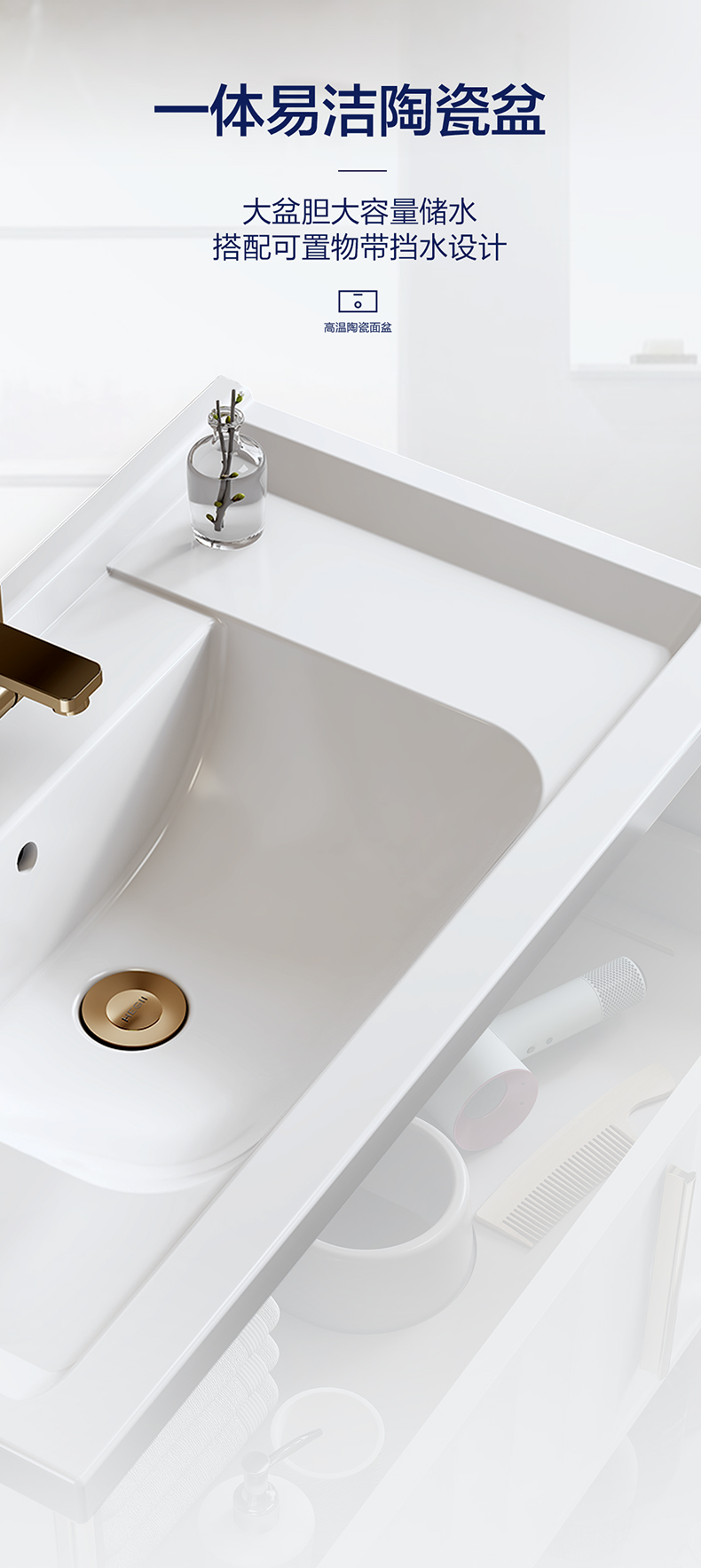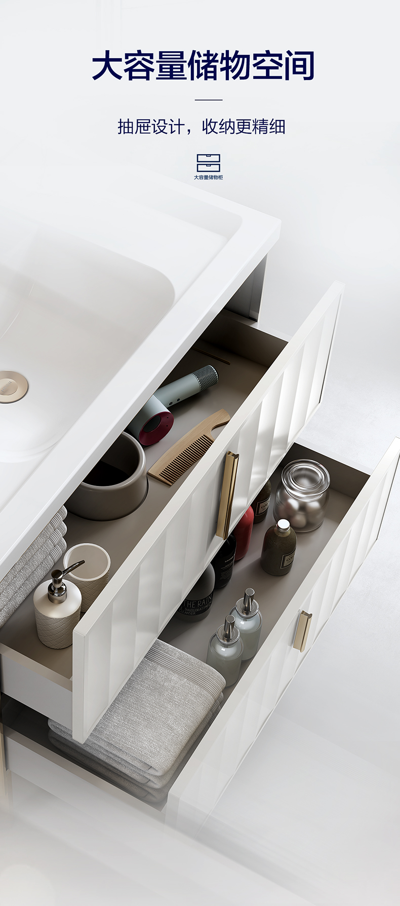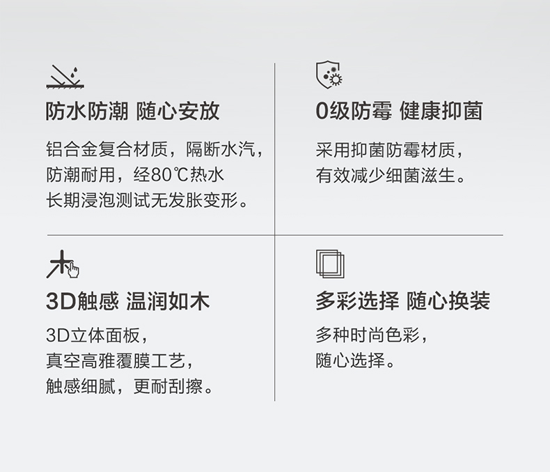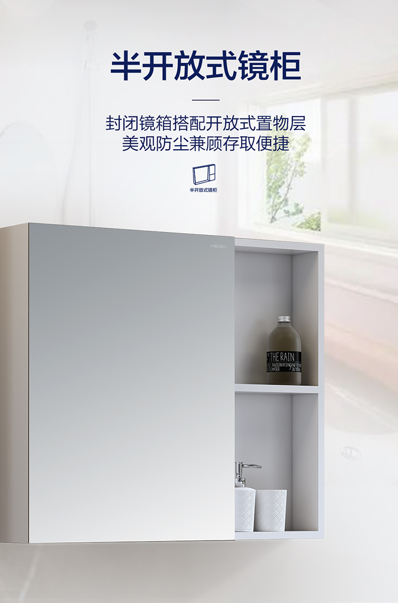 - 封闭镜箱搭配开放式置物层,美观防尘兼顾存取便捷