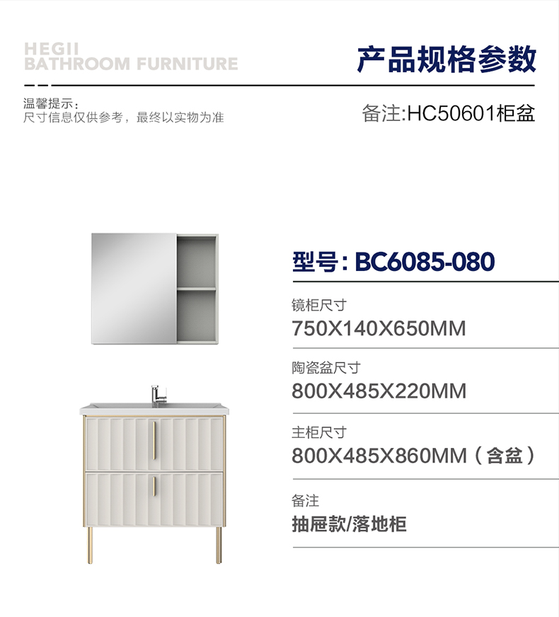 - 主柜尺寸 :800×485×860mm( 含盆 )