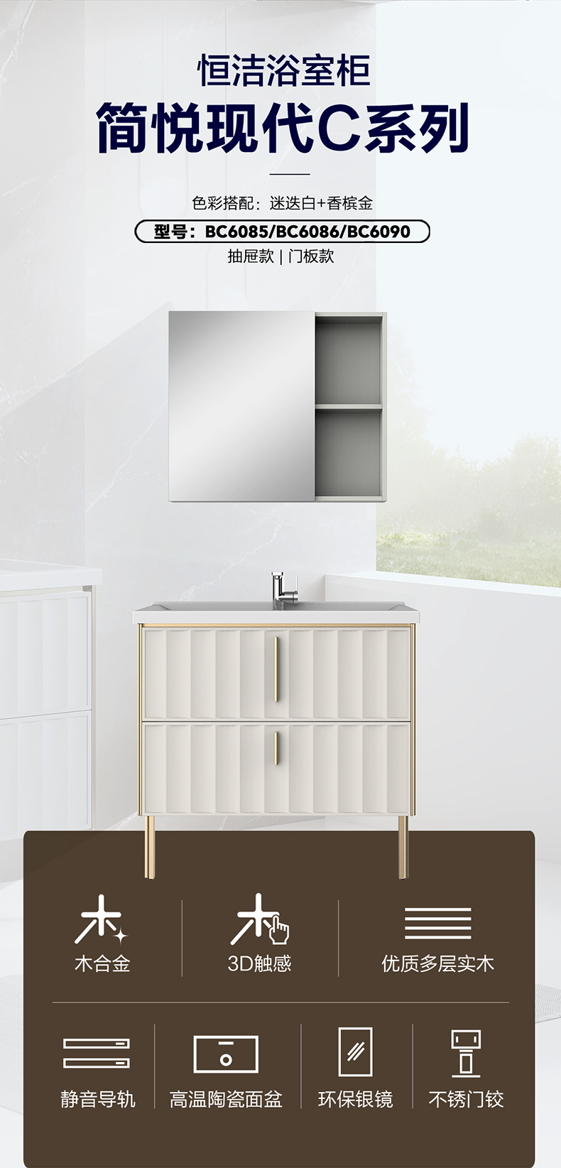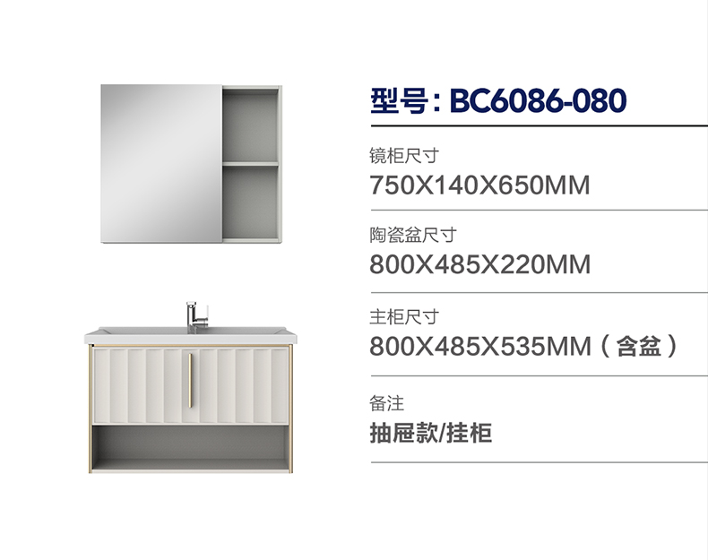 - 镜柜颜色:迷迭白